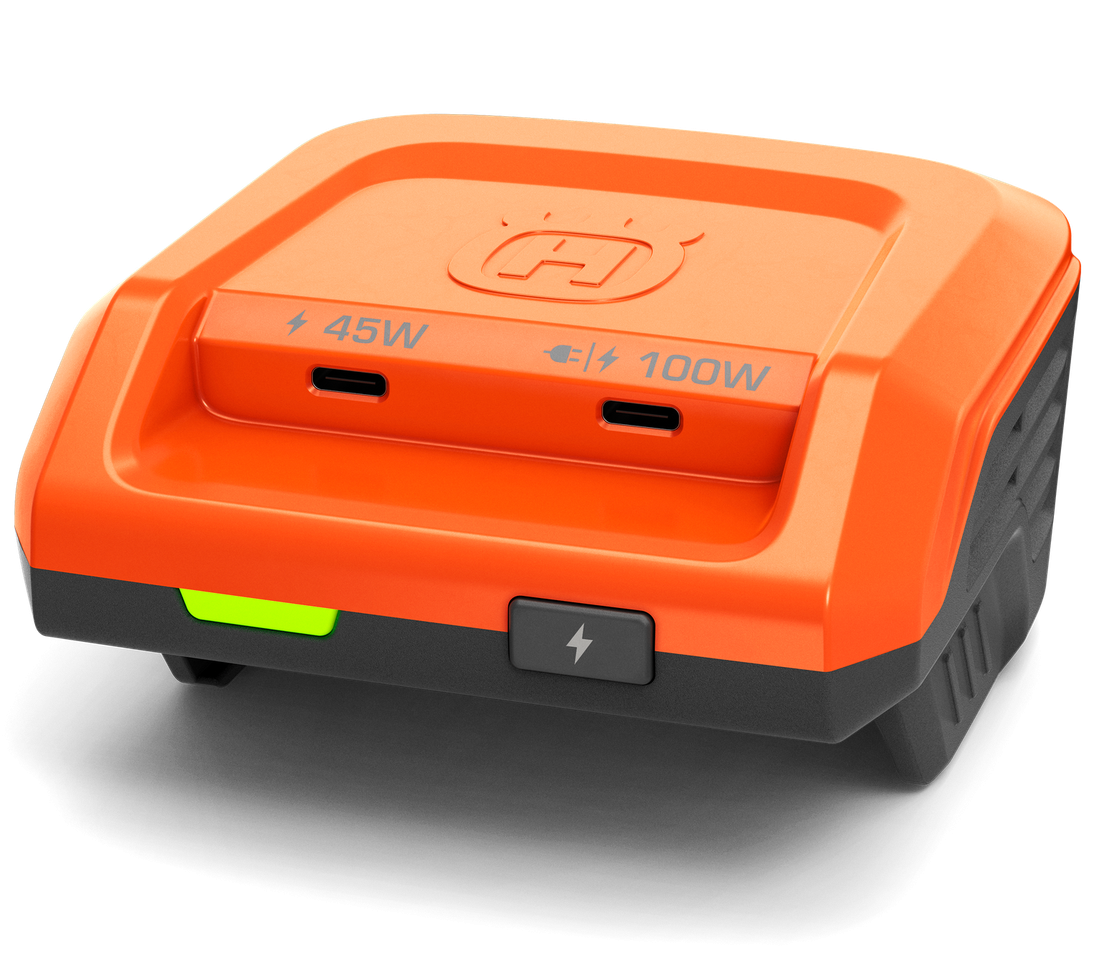 A Husqvarna 40-USB150X egy kompakt USB-C adapter, amely többek között laptopja, okostelefonja vagy hallásvédője töltésére használható, áramforrásként pedig Husqvarna BLi-X 36 V-os akkumulátort használ. Kétirányú funkcionalitásának köszönhetően az adapter Husqvarna BLi-X 36V akkumulátorát szabványos USB-C fali töltőn keresztül vagy USB-kompatibilis egyenáramú áramforrásról, például hordozható külső akkumulátorról (power bank) vagy mini napelemes töltőről is töltheti. A robusztus kialakítás teszi ezt az adaptert hasznos eszközzé a terepen dolgozó szakemberek számára. A rugalmas Husqvarna BLi-X 36V akkumulátor rendszer része.
